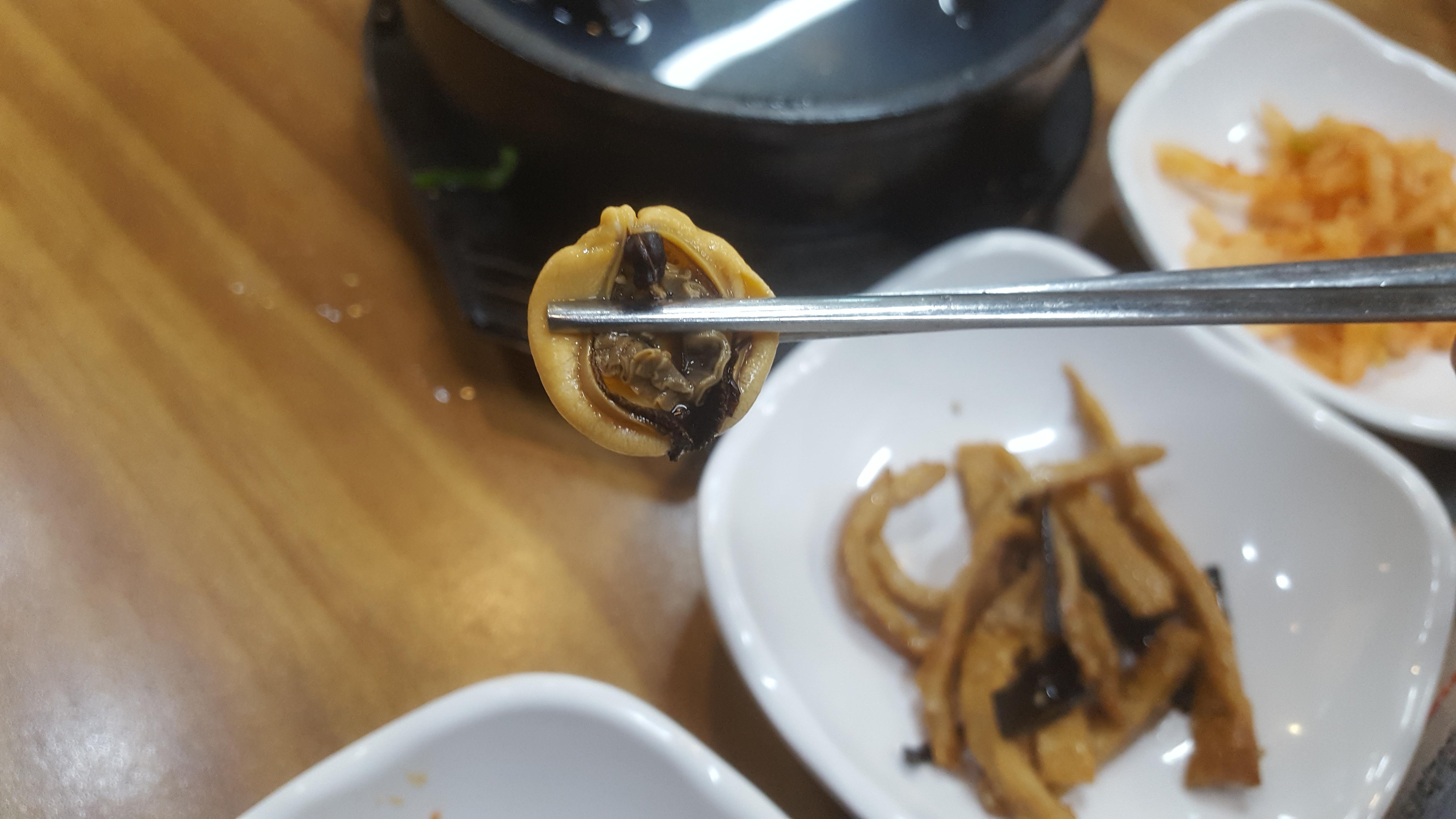 매운맛을 중화시켜줄 홍합탕이 나왔습니다.